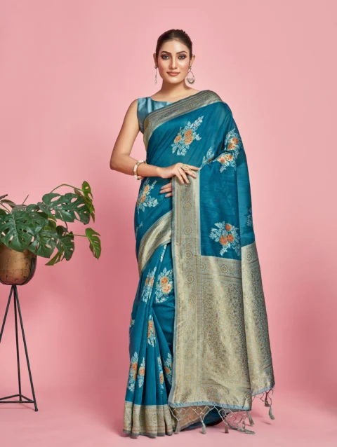 Women’s Woven Design Kanjivaram Linen Saree With Blouse Piece 3
