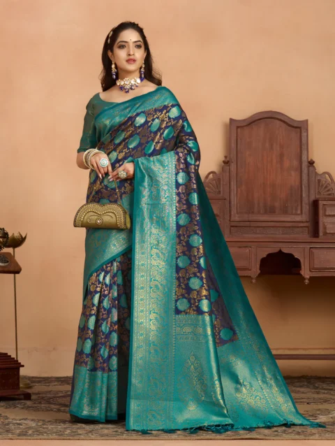 Women’s Woven Design Kanjivaram Linen Saree With Blouse Piece 2