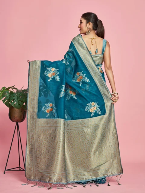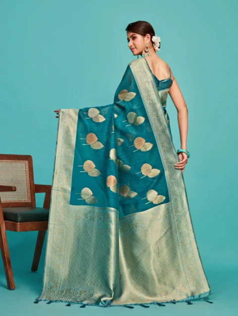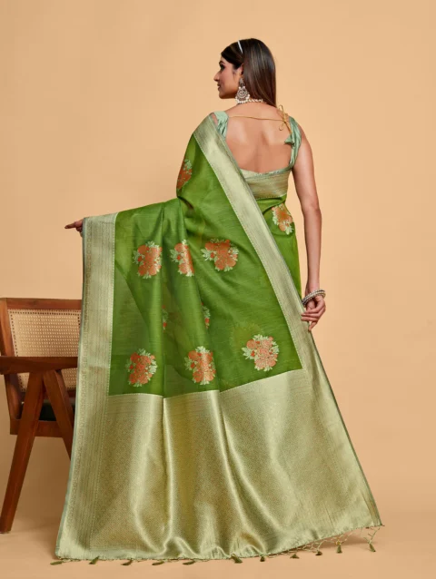 Women’s Woven Design Kanjivaram Linen Saree With Blouse Piece 3