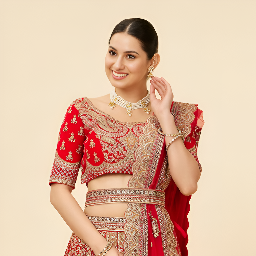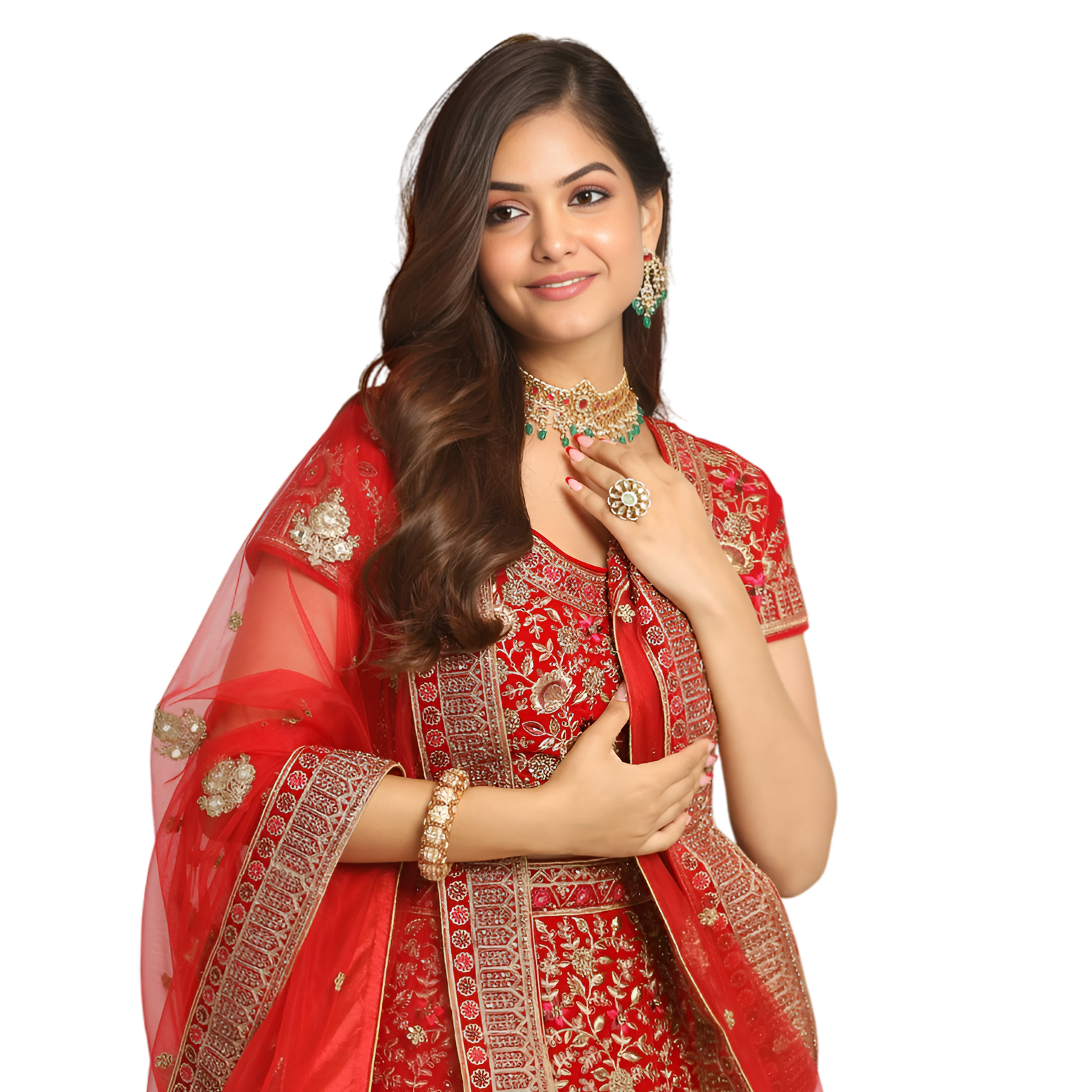 Rose Red Bel Buti Embroidered Bridal Lehenga