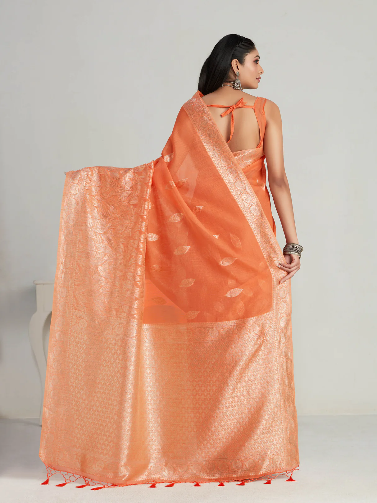 Women’s Woven Design Banarasi Lenin Saree With Blouse Piece 4