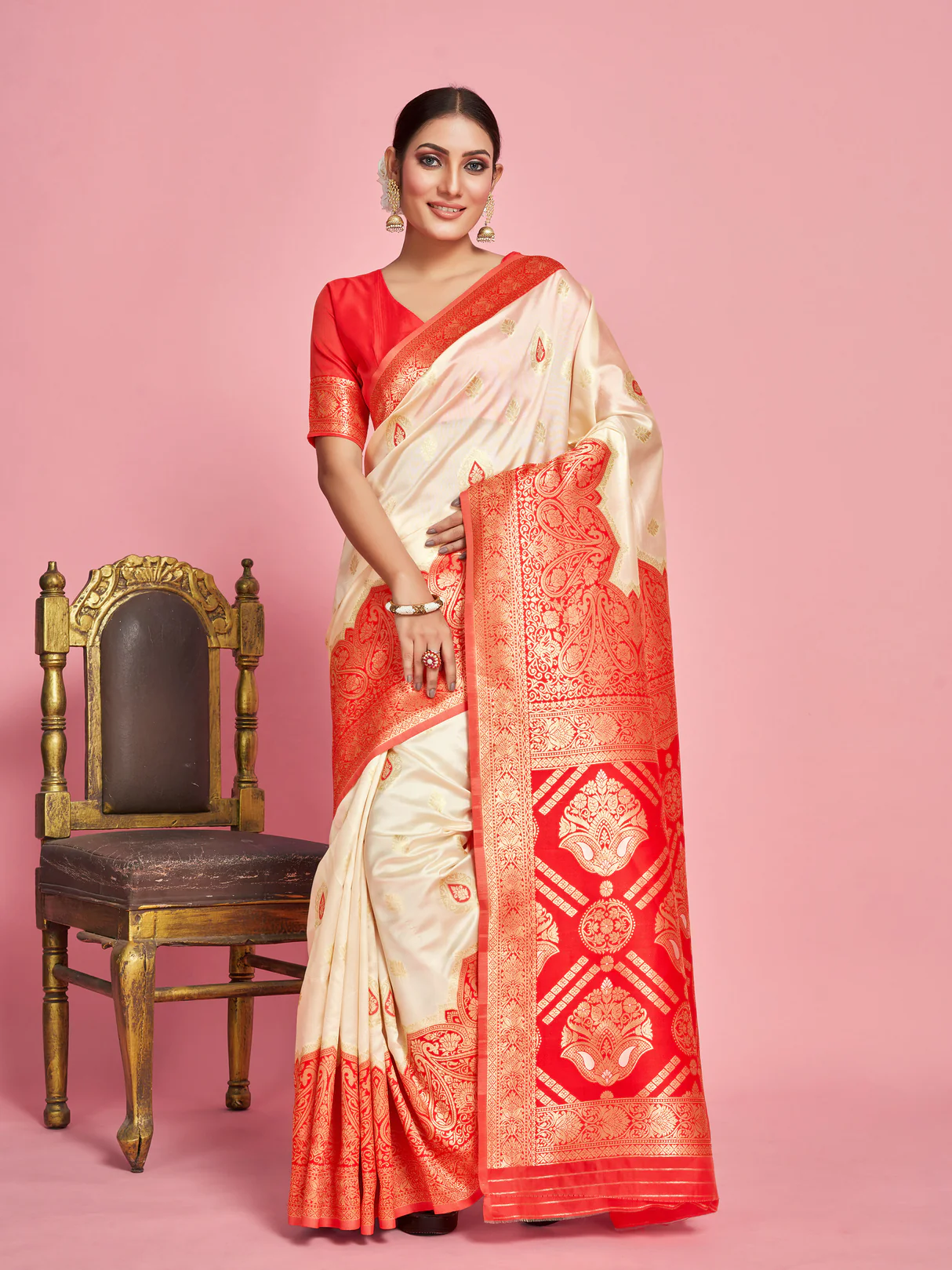 Women’s Woven Design Banarasi Style Poly Cotton Saree With Blouse Piece
