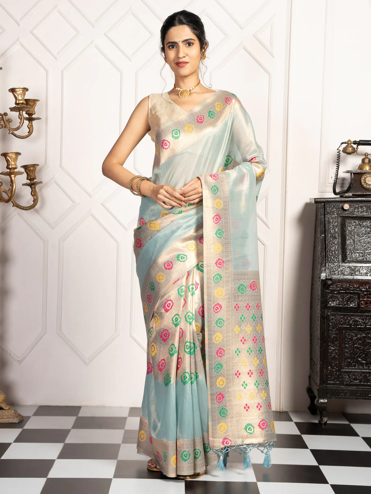 Women’s Woven Design Banarasi Linen Saree With Blouse Piece